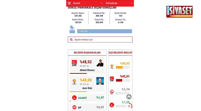 31 Mart Mahalli İdareler seçimleri tamamlandı ancak yankıları devam ediyor. Sabah saatlerinden itibaren basın yayın organlarında dolaşan ve Millet ittifakı Pamukkale Belediye Başkan Adayı Ahmet Divarcı’nın önde olduğuna dair görsel, CHP’de hareketli saatlerin yaşanmasına neden oldu. Anadolu Ajansı verilerinin bir süreliğine girilememiş olmasının oy oranlarını değiştirebileceğini bekleyen CHP kanadı, verilerin doğruluğunu teyit etmek için uğraşıyor.