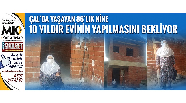 Çal İlçesi’nde yaklaşık 10 yıl önce İsmailler Mahallesinde bulunan evi istimlak edilerek yıkılan ve yerine meydan yapılan Ümmü Fidan isimli 86 yaşındaki vatandaş, evine kavuşacağı günü iple çekiyor.