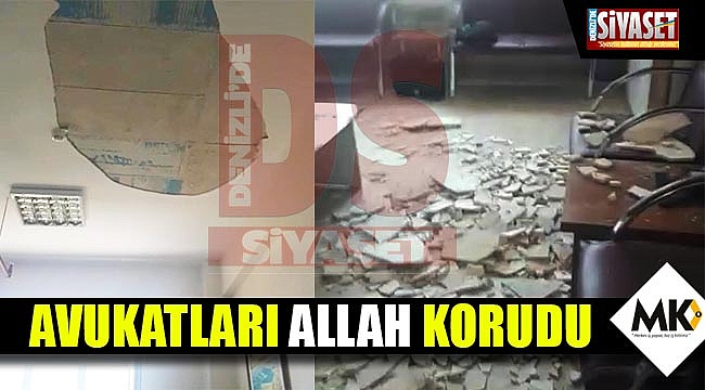 Acıpayam Adliyesi’nde sıcak saatler yaşanıyor. Acıpayam’da maddi hasara neden olan depremler silsilesinin etkileri silinmek için uğraşılırken, bugün sabah saatlerinde acıpayam Adliyesi’nde tavan çöktü. Avukatların beklediği baro odasında yaşanan ve herhangi bir yaralının olmadığı çökme olayı, korkulu anların yaşanmasına neden oldu. “Avukatları Allah korudu” yorumuna neden olan olayda 4-5 avukatın duruşma salonuna girmek için beklediği odanın tavanı ansızın çöktü. Meydana gelen olayı bazı avukatlar cep telefonları ile görüntüledi.