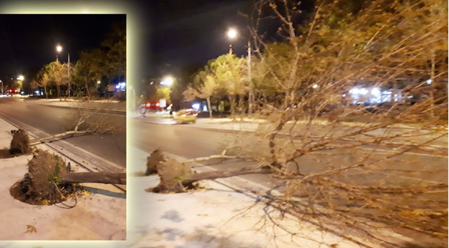 Denizli’nin bazı bölgelerinde etkili olan şiddetli rüzgar, ağaçlara zarar verdi. Askeri sahanın girişinden Çamlık’a kadar olan bölümdeki yer yer ağaçlar şiddetli rüzgardan etkilenerek yıkıldı. Köklerinden söküldüğü görülen ağaçlar, araç sürücülerine de zor anlar yaşattı. Bazı araç sürücüleri, seyir halinde son anda yola devrilen ağaçları fark ederken, olası bir kazanın da önüne geçmiş oldular. Vatandaşların ihbarı üzerine ağaçların yıkıldığı alana gelen ekipler, geç saatlerde ağaçları yoldan kaldırıldı.
