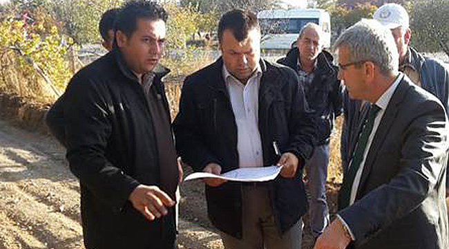 Başkan Şevkan, Fen İşleri Müdürü Memiş Canbaz ve teknik personelinden