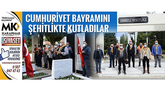 Şehıtlikte yapılan saygı duruşu okunan İstiklal Marşının ardından yapılan dua ile etkinlik sona erdi. Denizli Yörükleri Derneği Başkanı Yaşar Celal Ceylan, 29 Ekim Cumhurıyet Bayramında şehitleri unutmadıklarını söyledi. Derneğin kuruluşundan ıtıbaren 18 Mart Canakkale Şehitleri Anma gününde ve 29 Ekım'de Asri Mezarlıkta bulunan polıs ve asker şehitliğini ziyaret ettiklerini anlatan Başkan Ceylan, ''Dernek olarak kuruluşumuzdan bu güne beş yıldır her bayramda şehitliğimizi ziyaret ediyoruz. Bu yılda dernek yönetimi ve üyelerimizle birlikte valilik önündeki çelenk sunma töreninin ardından şehitliğimize gittik. Onların aziz ruhlarına dua ettik. Bize bu bayramı armağan eden başta Gazi Mustafa Kemal Atatürk ve aziz şehitlerimize şükranlarımızı sunuyoruz. Ruhları şad olsun mekanları cennet olsun. Gazilerimize uzun ömür diliyorum. Gelecek yıllarda da dernek olarak şehitlik ziyaretlerimiz devam edecek. Cumhurıyetimizi sonsuza dek yaşatma azim ve kararlılığıyla Mustafa Kemal Atatürk'ü silah arkadaşlarını şehitlerimizi gazilerimizi saygı şükran ve minnetle anıyoruuz. Cumhurıyet Bayramımızın 97. yılı kutlu olsun. Ne Mutlu Türküm Diyene'' dedi. İHA