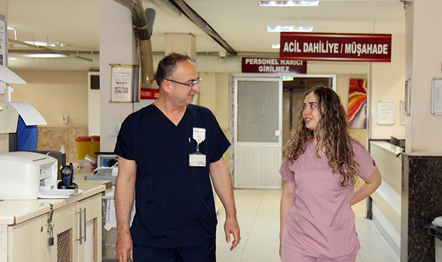 Dr. Zeliha Dağlıoğlu da, ilk görev yerinin babasının çalıştığı hastane olmasından dolayı çok mutlu olduğunu ve kendisini şanslı hissettiğini dile getirdi. Dağlıoğlu; “Ben bu sene Tıp Fakültesini yeni bitirdim ve Denizli Devlet Hastanesinde göreve başladım. Yaklaşık 2 aydır burada babamla beraber çalışıyoruz. Nöbetlerde denk geldiğim zamanlarda tabii ki hastaları sorabiliyorum. Bugün de beraber aynı gün nöbetteyiz. Beraber çalışmak gayet keyifli oluyor. Evde iyi bir baba kız ilişkimiz var, fakat hastanede olabildiğince daha ciddi bir ilişkimiz var. Hatta benim nöbette olup onun evde olduğu zamanlarda bazen kendisine danıştığım durumlar olabiliyor, bana yardımcı oluyor” diye konuştu.