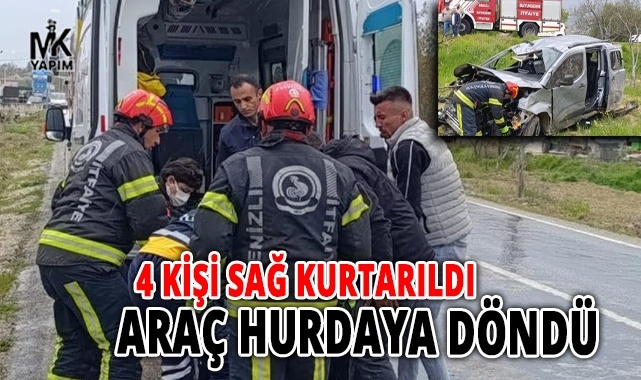 Çal'da hurdaya dönen araçtan 4 kişi sağ kurtarıldı