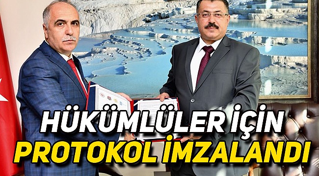 Denizli Valiliği ile Denizli Cumhuriyet Başsavcılığı arasında haklarında kamuya yararlı bir işte çalıştırılması kararı verilen hükümlülerin çalışma sürelerinin yerine getirilmesini sağlamayı ve yeniden suç işlemelerini engelleyici etkenleri güçlendirmeyi, sosyalleşmelerini teşvik etmeyi, toplumu suça karşı korumayı, üretken, verimli, kanunlara ve toplumsal kurallara saygılı, sorumluluk sahibi bir yaşam biçimine uyumlarını kolaylaştırma amacıyla işbirliği protokolü imzalandı.