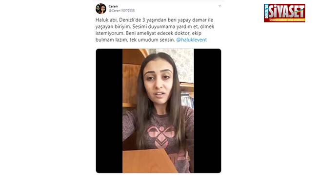 Denizli’de yaşayan 21 yaşındaki Ceren, 3 yaşından beri yapay damar ile yaşadığını ve tedavi için desteğe ihtiyacı olduğunu belirterek sosyal medya hesabından şimdiye kadar birçok kişiye destek olan Anadolu Halk ve Barış Platformu’nun (AHBAP) Başkanı olan şarkıcı Haluk Levent’ten destek istedi.