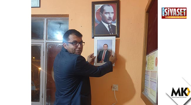 Başkanı Fethi Akcan’ın fotoğrafını, Atatürk fotoğrafının alt kısmına astı.