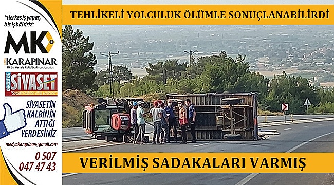 Kaza, Çivril ilçesi Denizli-Uşak karayolunda meydana geldi. Edinilen bilgilere göre; sabah saatlerinde 20 ACY 582 plakalı traktörü ile seyir halinde olan Mehmet Pınar, direksiyon hakimiyetini kaybetti. Römorkunda demir yüklü olan traktör yolun kenarına devrildi. Römorka yüklü demirlerin üzerinde bulunan iki kişi ise yaralandı. Faciadan dönülen o anlarda can kaybı yaşanmazken römork üzerinde oturan Onur Akdana ve Ramazan Yavuz yaralanarak Çivril Devlet Hastanesine kaldırıldı.