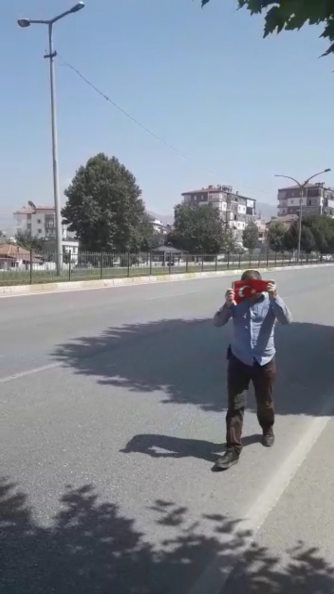 Antalya yolu üzerinde aracı ile seyir halindeyken Türk Bayrağının yere düştüğünü gören Pamukkale Belediyesi’nde görevli Yunus Emre Kalkan duruma hemen müdahale edip bayrağı yerden aldı. Öpüp alnının üstüne koyan ve daha sonra bayrağı arabasına götüren Kalkan, yaşadığı anlatı. "Pamukkale Belediyesi’nde şoför olarak çalışıyorum. Görevden çıkıp ana binaya giderken, bayrağı gördüm. Trafik akışının yoğun olması nedeniyle duramadığım için yaklaşık 300 metre ilerideki sapaktan dönerek geri geldim. Yoğun trafik akışı nedeni ile zorlansam da bayrağı almak konusunda bir dakika bile tereddüt etmedim” dedi.