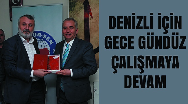 Denizli Büyükşehir Belediye Başkanı Osman Zolan, konuşmasını şöyle sürdürdü: “Projelerimiz, hızlı bir şekilde devam ediyor. Denizli merkezimizde ve ilçelerimizde hizmete aldığımız projelerimiz de var, devam eden projelerimiz de. En kısa sürede tamamını hizmete almayı planlıyoruz. Özellikle ulaşım alanında yaptığımız yatırımlar Denizli’de ulaşımı daha yaşanabilir bir hale getirecek. Alt yapı çalışmalarımızı tamamladığımız bölgelerde üst yapı çalışmalarımız devam ediyor. Onları da tamamladığımızda ulaşım anlamında şehrimizde büyük bir rahatlama olacak” dedi. Ziyaretin sonunda Memur-Sen Denizli İl Başkanı Osman Tavşan, Başkan Osman Zolan'a Kuran'ı Kerim hediye etti.