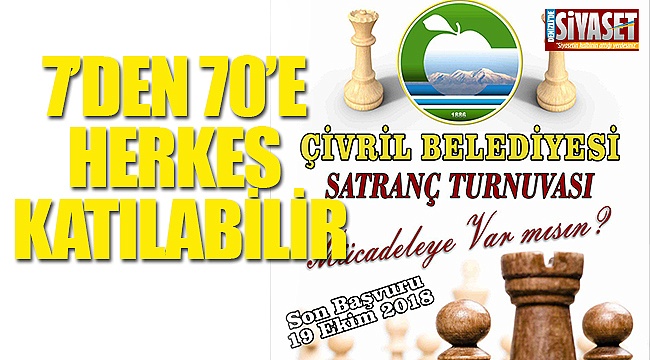 Çivril Belediyesi, İlçe Gençlik ve Spor Müdürlüğü, İlçe Milli Eğitim Müdürlüğü ve Pamukkale Üniversitesi işbirliği ile gerçekleştirilecek olan ‘Çivril Satranç Turnuvası’ 20-21 Ekim 2018 tarihleri arasında düzenlenecek.