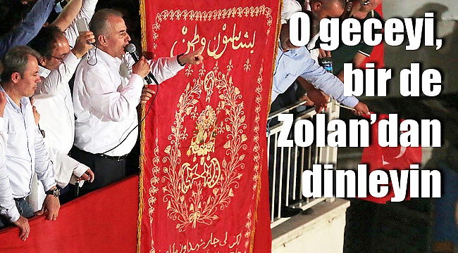 Başkan Zolan, "Oraya geldiğimde vatandaşımızın daha özgüvenli olduğunu gördüm, bize güvendiğini hissettim. Tüm gücümüzle kaçmadan oradaydık. İlk hedef biz olmamıza rağmen her şeyi göze aldık ve 'Denizli'de darbe olmayacak' dedik ve her şeyi göğüsleyeceğimizi söyledik. Meydanı dolduran insanımızı koruyup kollayıp yanlışa da yönlendirmedik" diye konuştu. 15 Temmuz Delikliçınar Şehitler Meydanı'nda 97 yıl sonra dalgalandırdıkları Denizli Sancağı altında toplanan Denizlililerin darbeye karşı dimdik ayakta durduğunu anlatan Başkan Osman Zolan, şöyle konuştu: "Ülkemizdeki hür demokrasi düzenine, temel hak ve hürriyetlere yönelik yapılan bu karanlık girişim, Sayın Cumhurbaşkanımızın dirayeti, Hükûmetimizin kararlı tutumu ve aziz milletimizin devletine sahip çıkmasıyla bertaraf edildi. Denizlililer olarak, 15 Temmuz gecesi bizler de vatan haini FETÖ’ye karşı tek ses tek yürek olup, şer odaklarına karşı dimdik durduk."