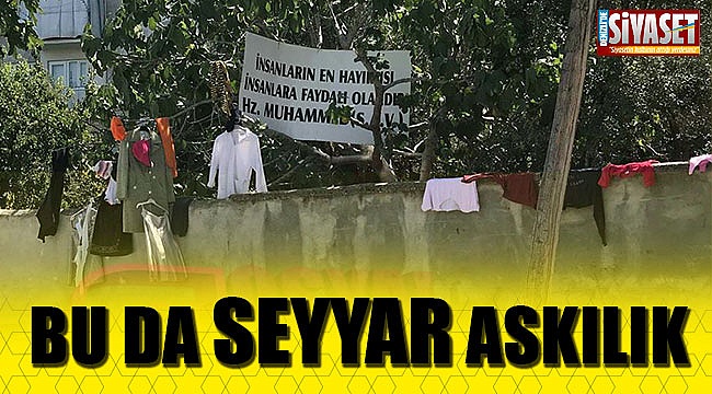 “İnsanların en hayrlısı, insanlara faydalı olandır’’ hadisinin de yazılı olduğu, 2 günde bir yıkanmış, ütülü kıyafetlerin asıldığı seyyar askılıktan ihtiyacı olan vatandaşlar gidip ihtiyaçları kadar kıyafet alabiliyorlar.