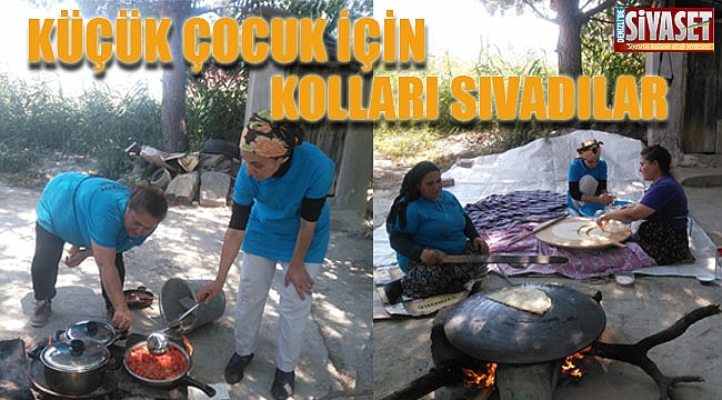 Bala Mahallesi’nde gittikleri evin temizliğini yapan ekipler evin küçük çocuğunun isteği üzerine önce sarma sardı, sonra yemek pişirdi. Ekipler, bu kadar da kalmayıp hamur yoğurup ekmek yaptı.