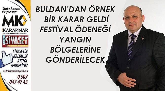Buldan Belediye Başkanı Mustafa Şevik, orman yangınları ve yaşanan can kayıpları nedeniyle festivaller ve konserlerin iptal edildiğini e ödeneklerin yangın bölgesine gönderileceğini açıkladı.