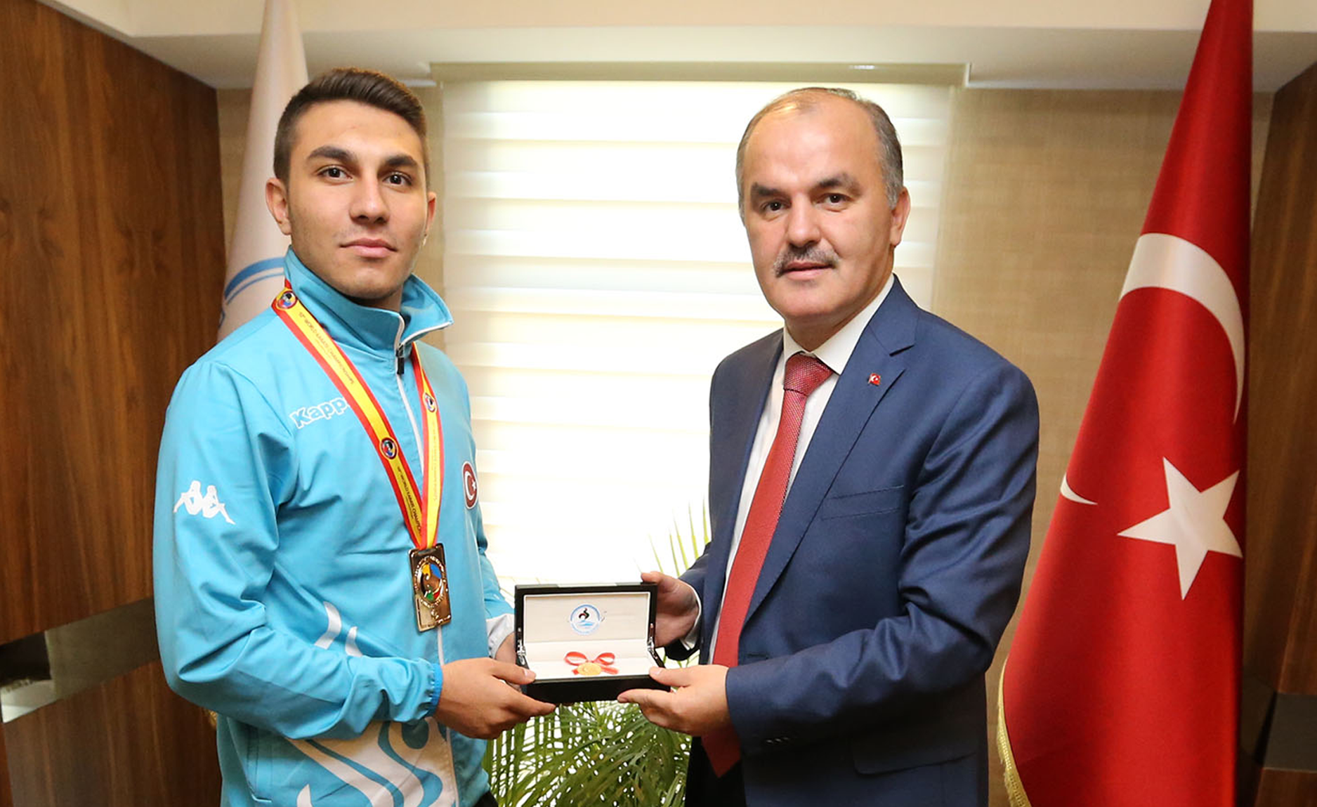 17 yaşındaki Özdemir’i başarısından dolayı tebrik eden Pamukkale Belediye