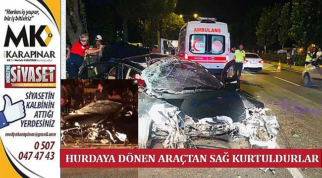 Hurdaya dönen araçtan sağ kurtuldurlar