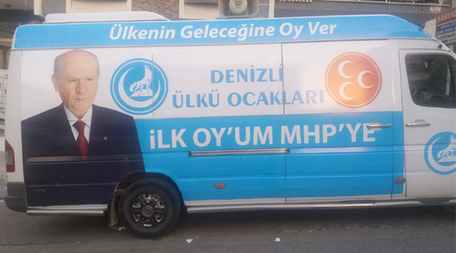 Ülkü Ocakları Denizli İl Başkanlığı “ilk oyum MHP’ye” çalışmaları kapsamında bir araç giydirerek şehirde dolaştırmaya başladı. Türk gençliğine davet için sahalara çıkartıldığı ifade edilen araçlardan birkaç tane daha giydirilecek. Konu ile ilgili sosyal paylaşım sitesinde paylaşım yapan Ülkü Ocakları Denizli İl Başkan Yaşar Hisarlıoğlu, emeği geçen herkese teşekkür etti. Hisarlıoğlu, paylaşımında “Ülkü Ocakları Denizli İl Başkanlığı ilk oyum mhp’ye çalışmaları kapsamındaki araçlarımızdan ilkinin giydirme ve ses çalışmaları tamamlandı. Aracımızı Türk gençliğine davet için sahalara uğurladık. Emeği geçenlerden Allah razı olsun. Var olsun Ülkü Ocakları ilk oyum MHP’ye” ifadelerine yer verdi.