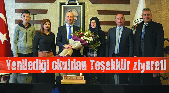 İlçe Milli Eğitim Müdürü Bülent Akhan, İmam Hatip Ortaokulu Müdürü Özcan Aslan, Türkçe Öğretmeni Naime Açıklar, öğrenciler Nazlı Gencay ve Abdülsamet Konakçı İmam Hatip Ortaokulu’na yapılan çalışmanın ardından Sarayköy Belediye Başkanı Ahmet Necati Özbaş’a teşekkür ziyaretinde bulundu.Okullarına yapılan çalışmalardan dolayı Başkan Özbaş’a teşekkür eden İmam Hatip Ortaokulu Müdürü Özcan Aslan, “ Belediye Başkanımız sayın Ahmet Necati Özbaş, eğitim konusunda ne zaman yardım istersek hep destek verdi. Her zaman bizlere kapısını açtı. Kendisine okulumuza ve öğrencilerimizin hayatında önemli bir nokta olan eğitime verdiği desteklerinden dolayı sonsuz teşekkür ediyorum” dedi.Gençlerin eğitim ile hayatları arasında her zaman köprü olacaklarını belirten Başkan Özbaş, “ Geleceğimiz olan gençlerimiz bizler için çok değerli. Onların sosyal ve kültürel hayatlarına güzel dokunuşlar yapmak için projeler üretiyor, hizmetlerimize yenilerini ekliyoruz. Tabi ki onlara yaptığımız hizmetlerin en başında eğitimleri geliyor. Onların eğitim aldıkları okullarımızdan, eğitim araç gereçlerine kadar kısacası bizlere ihtiyaç duydukları her an yanlarında olmaya çalıştık, olmaya da devam edeceğiz. Yaptığımız hizmetlerde bizleri mutlu eden ya da edecek olan tek şey öğretmen ve öğrencilerimizin yüzlerinin gülmesi, başarılarının artması. İnşallah bu güne kadar olduğu gibi bundan sonra da eğitim camiamızın her zaman yanında olmayı sürdüreceğiz” diye konuştu.