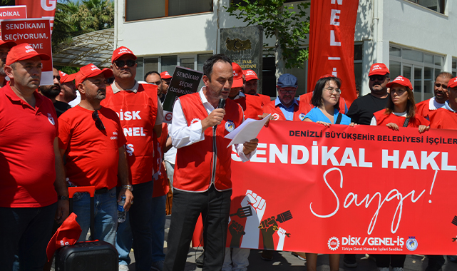 Bir süredir Denizli kamuoyunda konuşulan konuların başında gelen Denizli Büyükşehir Belediyesi’nde işçilere sendika değişimi ile ilgili baskı yapıldığına dair iddialar, DİSK’e bağlı Genel-İş Sendikası üyesi işçiler tarafından yeniden gündeme taşındı. Çok sayıda sendika üyesi işçilerin hazır bulunduğu basın açıklamasında çeşitli sloganlar atıldı. Burada basın açıklamasını okuyan Genel-İş Sendikası Genel Başkan Yardımcısı Faruk Saral, Denizli Büyükşehir Belediyesi’nde çalışan işçilere yönelik artan sendikal baskılara karşı kamuoyuna seslendi.