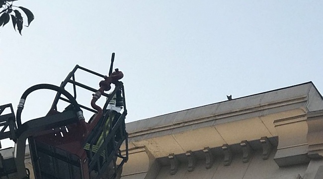 Kurban bayramında mesai yapan itfaiye ekipleri, çatıda mahsur kalan kedi yavrusunu kurtarmaya çalıştı. Vatandaşların ihbarı üzerine bayram yerine gelen itfaiye ekipleri, yine vatandaşların meraklı bakışları arasında çatıda kalan kedi yavrusunu kurtarmak için yoğun çaba sarf etti. Trafiğin kapatıldığı yolda uzun süre kediyi indirmek için mücadele eden ekiplerini bu çabası kedi yavrusunun kaçması ile son buldu. Kediyi kurtarma umuduyla çatıya çıkan ekipler, eli boş bir şekilde aşağıya İndi.