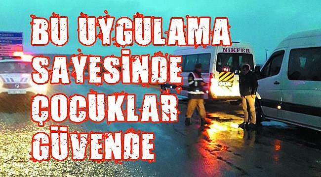 Çocuklarımızın huzur ve güven içerisinde okullarına gidip gelebilmeleri için okul servis araçlarının denetlenmesi, ayrıca okul çevresinde her türlü yasa dışı faaliyetin engellenebilmesi için jandarma ve polis tarafından bugün sabah saatlerinde (81) İl genelinde olduğu gibi, ilimizde de “Çocuklarımız Güvende” uygulaması yapıldı.Jandarma bölgesinde bulunan Mahallelerden taşımalı eğitim kapsamında okullara öğrenci taşıyan okul servis araçlarının denetlenebilmesi maksadıyla, sabah erken saatlerde yollarda olan Jandarma Trafik Personeli uygulamalar sonucunda (85) servis aracını denetledi.Bir yandan “İyi Dersler Şoför Amca” projesi kapsamında servis şoförlerinin eğitimine devam eden Jandarma, diğer yandan denetimlerin aralıksız sürdürüleceğini, eğitim ve denetimlerin asıl hedefinin kazaları engellemek ve çocuklarımızı korumak olduğunu belirtti.Bu kapsamda servis şoförlerine büyük görevler düştüğünü, mevsimin kışa döndüğü şu günlerde şoförlerimizin kayganlaşan yolda hız kuralları başta olmak üzere, trafik kurallarına uygun araç kullanmaları gerektiğini ifade etti.Ayrıca kazalarda ölüm ve yaralanmaların en aza indirilmesi için emniyet kemerinin önemini vurgulayan yetkililer, okul servis araçlarında emniyet kemeri takılması hususunu özellikle kontrol ediyor.