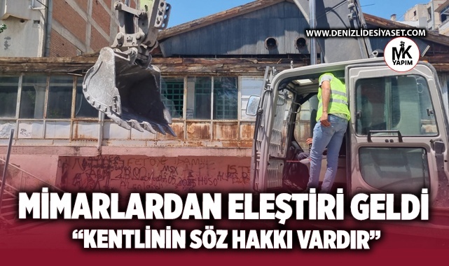Binanın kentin kültüründe bir yeri olduğunu belirten Başkan Kabel, eleştirilerini sıraladı. Kabel, "Bizim burada eleştirdiğimiz nokta proje elde etme yöntemi. Kentte kamuya ayrılmış alanlarda yapılacak her türlü hizmet ve projede kentlinin söz hakkı vardır. Mimarlar Odası bir STK olarak şehir hakkını sonuna kadar savunur. Burada yapılacak yeni bir projede, Mimarlar Odası olarak bu kentte bulunuyorsak, proje elde yöntemlerini büyükşehir ile tartışmak gerekir. Neden? Çünkü ortaya çıkacak eser tüm kentlinindir. Kamuya ait yapılan yarışma yöntemi ya da çağrı yöntemleri ile Denizli’de yaşayan mimarlar proje elde etme sürecine dahil edilebilir. Belediye başkanlarının hızlı olma, bulundukları döneme proje yetiştirme kaygılarını çok iyi anlıyoruz. Yani bu projeler hazırlanıp yıkım aşamasına geçilmesi, Mimarlar Odası olarak eleştireceğimiz temel konulardandır" dedi.