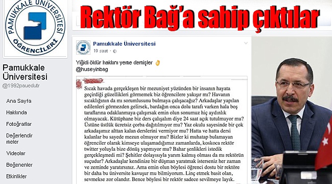 Pamukkale Üniversitesi Öğrencileri sayfasından yapılan ve "Yiğidi öldür hakkını yeme demişler" başlığı ile yapılan paylaşım çok sayıda beğeni ve yorum aldı. Ağırlıklı olarak Rektör Bağ'a mezuniyet töreni ve öncesinde haksızlık yapıldığı vurgulanan, yaptığı çalışmalara yer verilen paylaşımda, en dikkat çekici ifade ise, "Böylesi bir rektör sadece sevilmeye layık" ifadesi dikkat çekti.