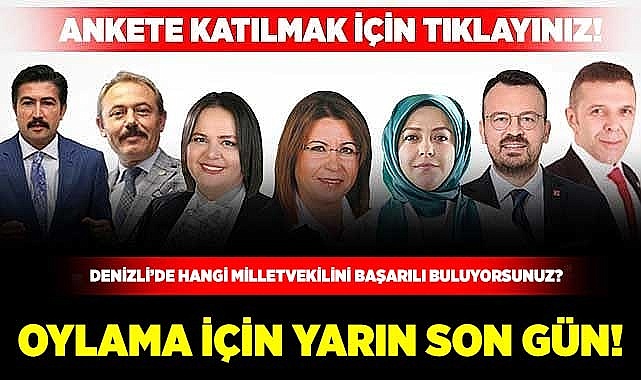 Güvenilir yayıncılık anlayışının yanında, geçmiş dönemlerde yaptığı anketlerle Denizli’de büyük ses getiren www.denizlidesiyaset.com olarak geçtiğimiz günlerde yeni bir anket başlatmıştık. Anketimizde ‘Denizli’de hangi milletvekilini başarılı buluyorsunuz?’ sorusunu sizlere yöneltmiştik.