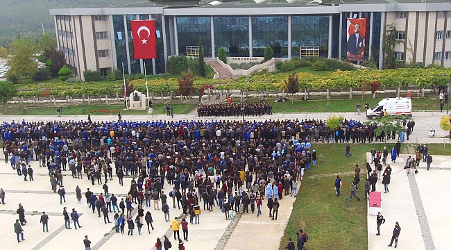 08.45’de PAÜ Rektörlük binası önünde başlayan tören, Rektör Yardımcısı Prof. Dr. Semin Fenkci’nin atatürk büstüne çelenk koyması sonrasında saat dokuzu beş geçe çalan siren ile birlikte yapılan saygı duruşunun ardından okunan İstiklal Marşı ile son buldu.