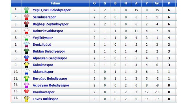 Denizli Süper Amatör Lig Ali İpek sezonunun 2’nci haftasında oynanan 7 müsabakada toplam 42 gol kaydedildi. Yeşil Çivril Belediyespor’un averajla lider olduğu 2’nci hafta sonunda Serinhisarspor, Bağbaşı Zeytinköyspor galibet serisini sürdüren takımlar oldu. En farklı galibiyeti Tavas Birlikspor’u 11-0 mağlup eden lider, Yeşil Çivril Belediyespor aldı.