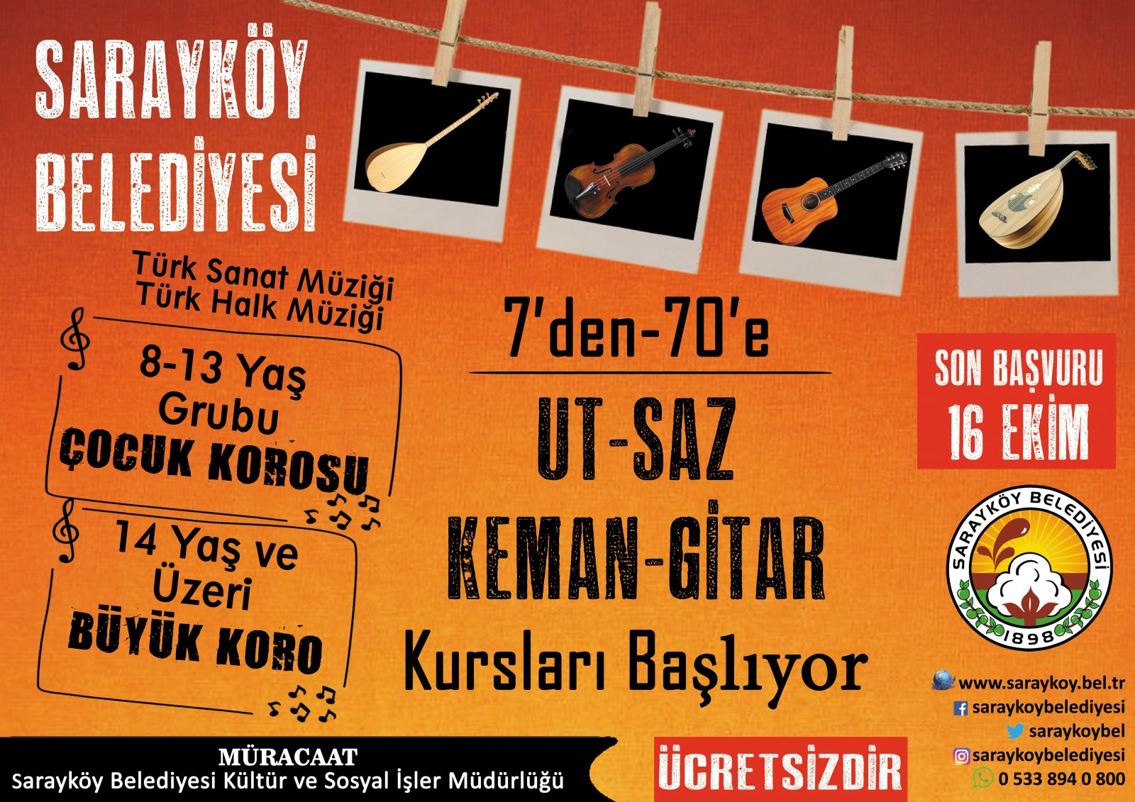 Sarayköy Belediyesi, Gençlik Merkezi’nde başlatacağı keman, gitar, ut ve saz kursunda alışılmışın dışına çıktı ve kurslara katılmak isteyenlerin yaşlarını 7’den 70’e olarak açıkladı. Sarayköy Belediyesi, ilçedeki sanat ve kültürün artması için projeler üretmeye devam ediyor. Hayata geçen projelerde sadece gençleri değil, ilçedeki diğer yaş gruplarını da düşünen sarayköy belediyesi son projesinde de dikkatleri üzerine çekti. Gençlik Merkezi’nde gerçekleşecek olan saz, ut, keman vegitar kursundaki yaş sınırını 7’den 70’e olarak açıkladı. İlçedeki genç kesim bir yana yaşlı vatandaşlarında yer alacağı bu kurs için profesyonel eğitmenler seçildi. Sarayköy Belediyesi’nin ilçeye kavuşturduğu Gençlik Merkezi’nde eğitimlerin gerçekleşeceğini belirten Sarayköy Belediye Başkanı Ahmet Necati Özbaş, “Bu kursumuzda biraz sıradanlaşmanın dışarısına çıktık. İlçemizdeki genç kardeşlerimizin yanında diğer hemşehrilerimizin de bu kurslardan yararlanması gerektiğini düşündük. O yüzden yaş sınırımız yok. 7’den 70’e tüm hemşehrilerimizi bu kurslarımıza bekliyoruz” dedi.