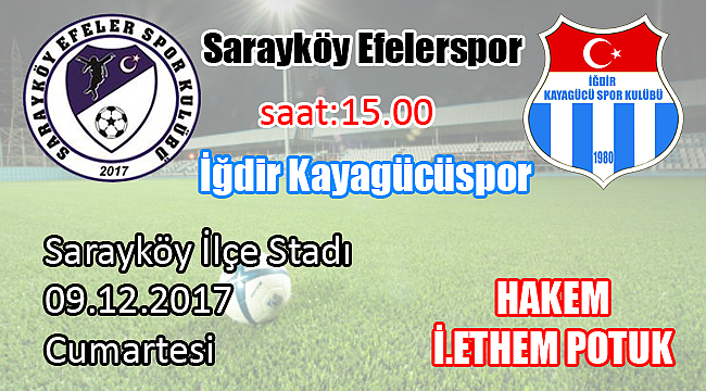 Adım adım zirveye yaklaşmaya devam eden sarayköy efelerspor evinde ligin son sırasında bulunan İğdir Kayagücüspor'u konuk edecek. Saat 15:00te Sarayköy İlçe stadında oynanacak karşılaşmada hakem İbrahim Ethem Potuk düdük çalacak. Sarayköy Efelerspor 13 puanla 5.sırada fakat lider Karakovaspor ile arsında 4 puan bulunuyor. Ligte henüz 3 puan alarak sonuncu sırada bulunan İğdir Kayagücü ise 2.sezon öncesinde 3 puan alarak moralini düzeltmek istiyor.
