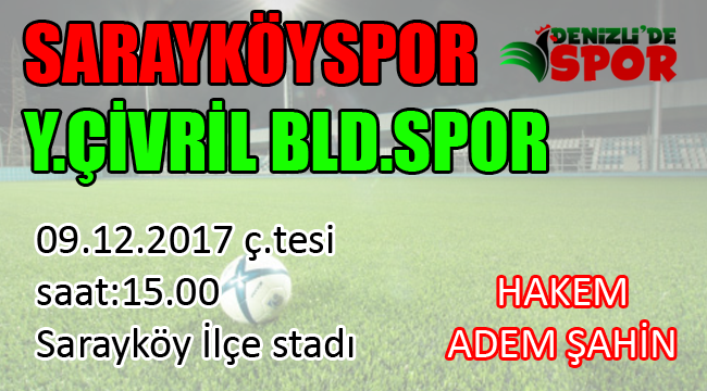 Saat 15:00te başlayacak karşılaşmada hakem Adem Şahin düdük çalacak. Mücadele Sarayköy ilçe stadında oynanacak. 21 puanla 5.sırada bulunan sarayköyspor zirveye 1 adım daha yaklaşmak adına puan kaybı istemiyor. Ligde zor günler geçiren Yeşil Çivril Belediyespor ise 11 puan ile 11.sırada yer alıyor. Mutlak 3 puan için sahada olacak 2 takımın mücadelesi nefesleri kesecek. 2017-2018 futbol döneminde 1.sezonun son haftası olan 13.haftada ise Sarayköyspor Yeşilköyspor'a konuk olurken ,Yeşil Çivril Belediyespor ise evinde Nikferspor'u ağırlayacak ve 1.sezonun maçlarını tamamlayarak 2.sezon hazırlıklarına başlayacaklar.