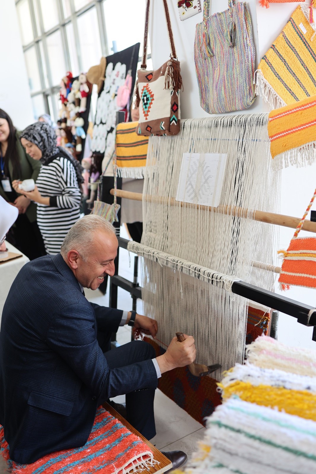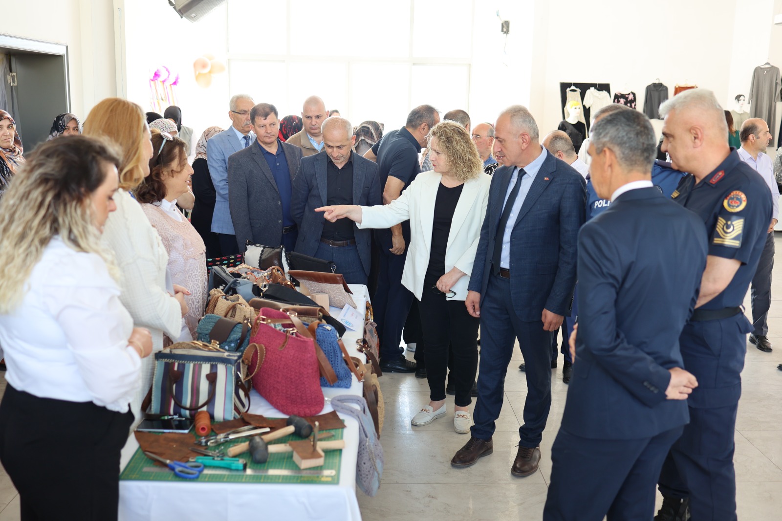 Sergide, Halk Eğitim Merkezi bünyesinde açılan 43 farklı kursa devam eden 775 kursiyerin çalışması beğeniye sunuldu. Geleneksel el sanatlarından modern tasarımlara, hazır giyimden geleneksel halı kilim dokuma alanında çeşitli ürünlerin yer aldığı sergide bu yıl ilk kez açılan deri tasarım kursunda üretilen çanta ve cüzdanlar ilgi gördü.