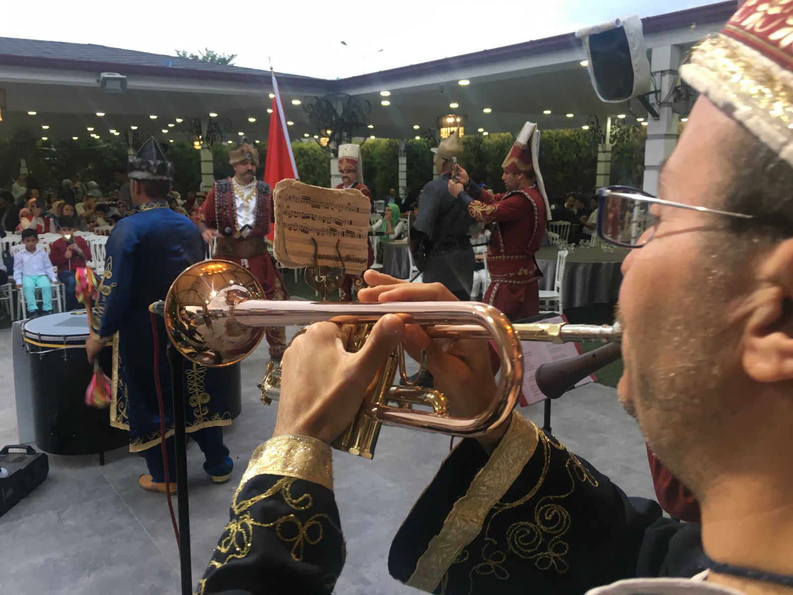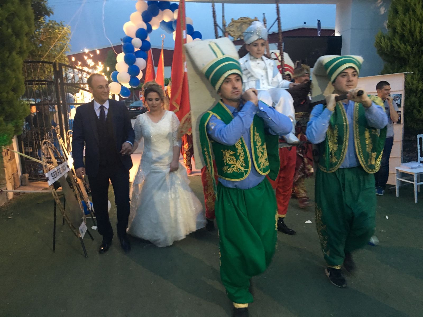 Eşi ile birlikte girişte davetlileri karşılayan Örki ailesi, davetlilerle yakından ilgilendi. At üstünde bir süre gezdirilen Asım Örki, daha sonra mehter eşliğinde mehterenla taht eşliğinde davetlileri selamladı.
