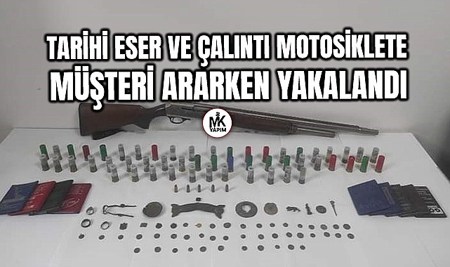 Tarihi eser ve çalıntı motosiklete müşteri ararken yakalandı