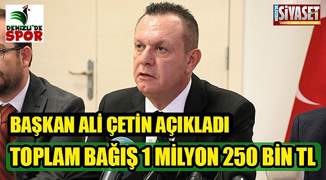 Başkan Ali Çetin göreve geldikleri andan itibaren yönetim kurulu olarak kulübe gelir getirecek projeler üzerine yoğunlaştıklarını belirterek, "Bizler ürettiğimiz projeler ile bu kulübün mali yükünü hafifletmek için elimizden geleni yapıyoruz. Bir yandan bu projelere çalışırken bir yandan ben ve arkadaşlarım bağış toplamak için canla başla çalışıyoruz. 28 Eylül tarihinden bu yana topladığımız bağış miktarı 1 milyon 250 bin TL ve bu çok güzel bir rakam. Denizli halkının bize destek olacağına inanıyorduk. Sezon sonuna kadar hedefimiz olan en az 5 milyon TL bağış toplayarak kulübümüzün mali yükünü hafifletmek istiyoruz. Denizli halkı, esnafı ve işadamı takımına sahip çıktı. Tüm Denizli halkına, esnafına, işadamlarına ve emeği geçenlere çok teşekkür ediyorum" dedi.