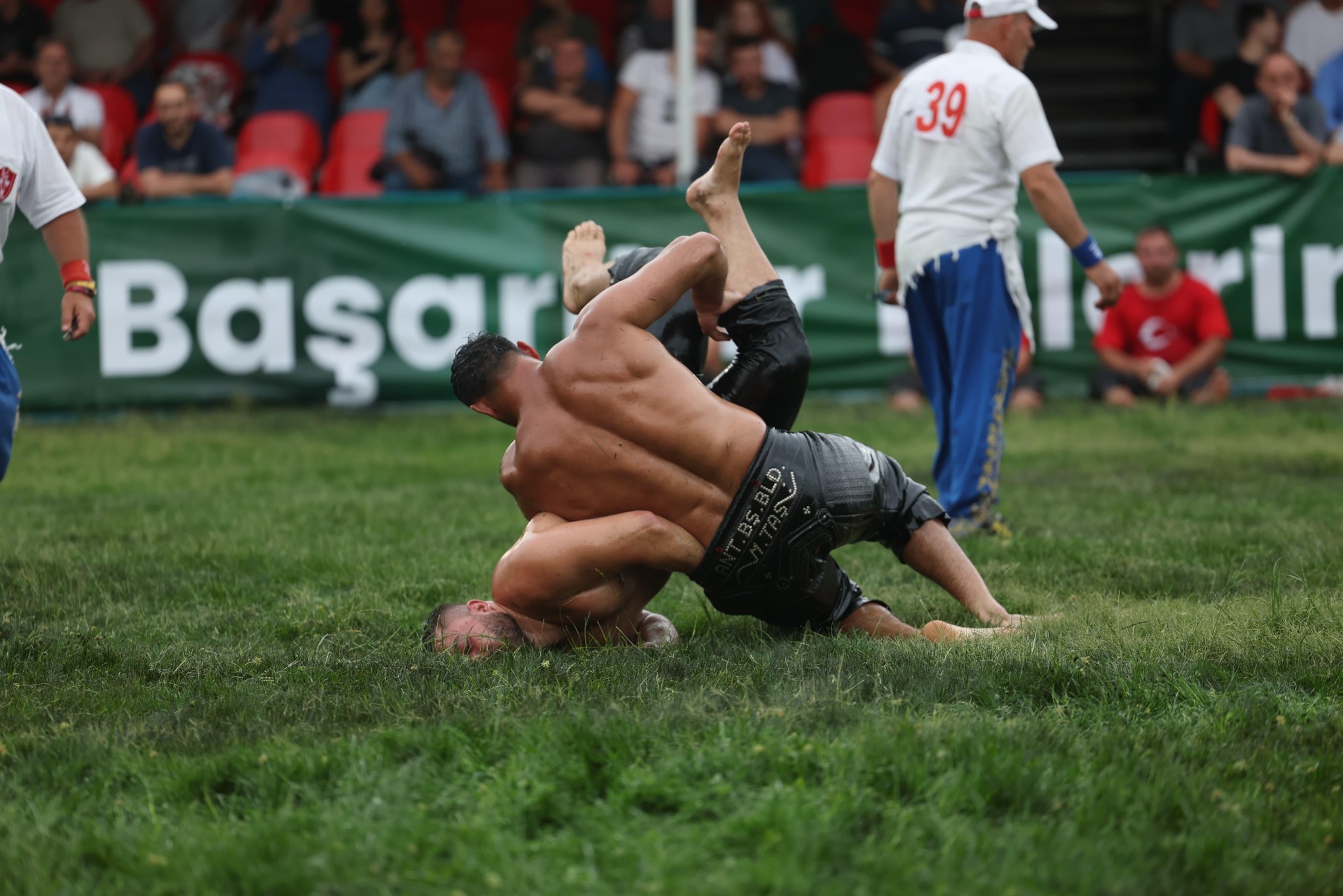 Kırkpınar’ın usta pehlivanları İsmail Balaban ve Orhan Okulu’nun da aralarında bulunduğu 34 başpehlivanın ter döktüğü güreşlerde, çeyrek finalde;