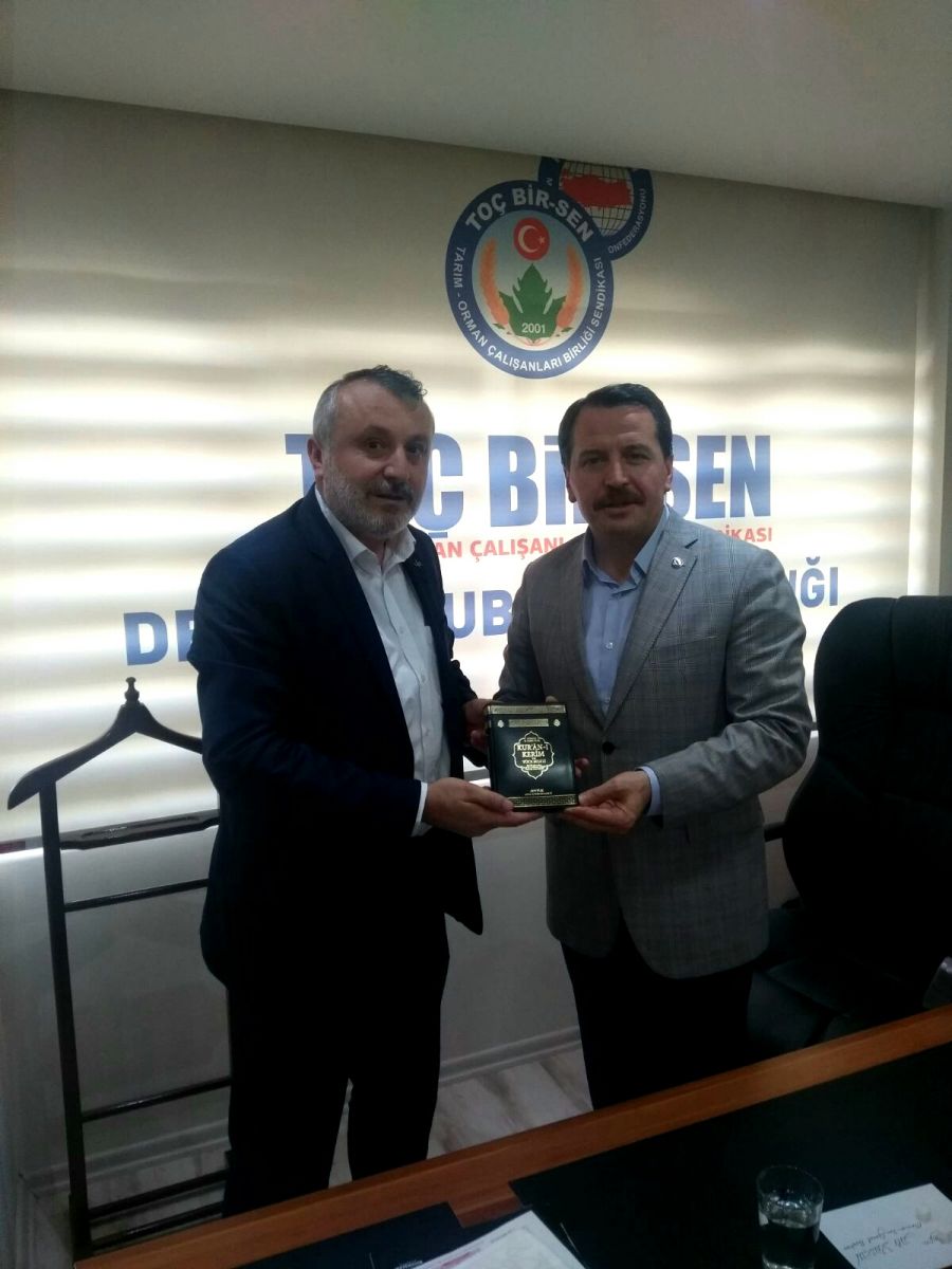 Memur-Sen İl Başkanı Osman Tavşan ziyaretlerinden dolayı şükranlarını sundu. Tavşan, Ali Yalçın'a Kur’an-ı Kerim hediye ederken, Genç Memur-Sen İl Başkanı Yasin Karaman Denizli'nin ürünü bornoz hediye etti.