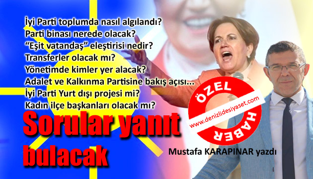 Türk siyasetinin önemli isimlerinden biri olan Genel Başkanımız Meral Akşener, toplumda saygınlığı olan ve kabul gören bir liderdir. Gerek partimiz kurulmadan önce v e gerekse de kurulduktan sonraki geçen süreçte toplumda karşılığı olduğunu bizlere gelen taleplerden de net bir şekilde görüyoruz. Partimiz saflarında olmak isteyenler üyelik talebindebulunuyor. Ancak henüz daha üyelik işlemine başlamadık. Şu an aktif bir siyaset yok. Sahaya indiğimizde herşey belli olacak. Vatandaş traşa başlayacak”